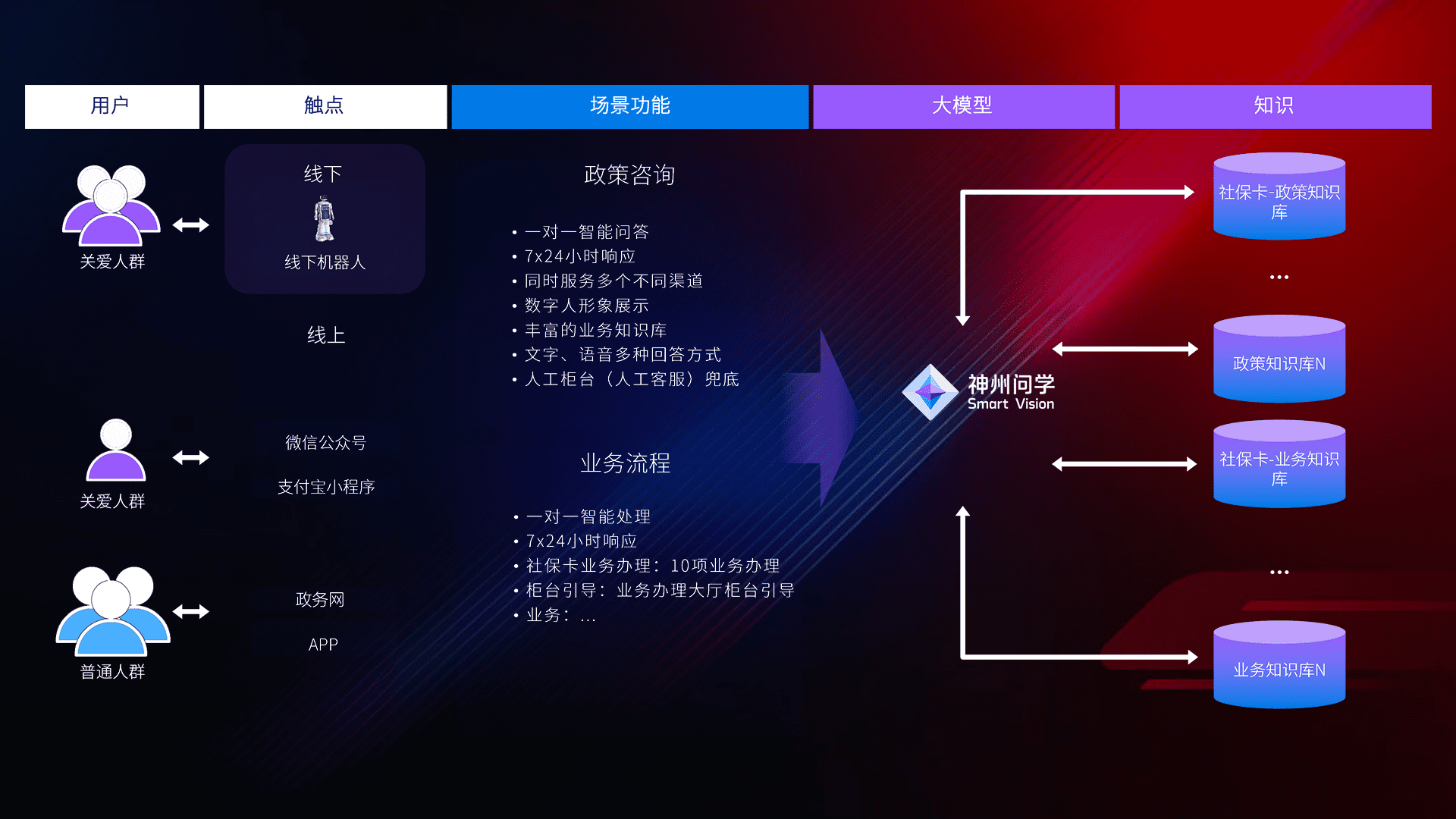• 线上线下全覆盖:线上提供微信公众号、、、支付宝小程序、、政务网、、、、app多种渠道,,,,与线下机器人形成完整服务体系。。。。